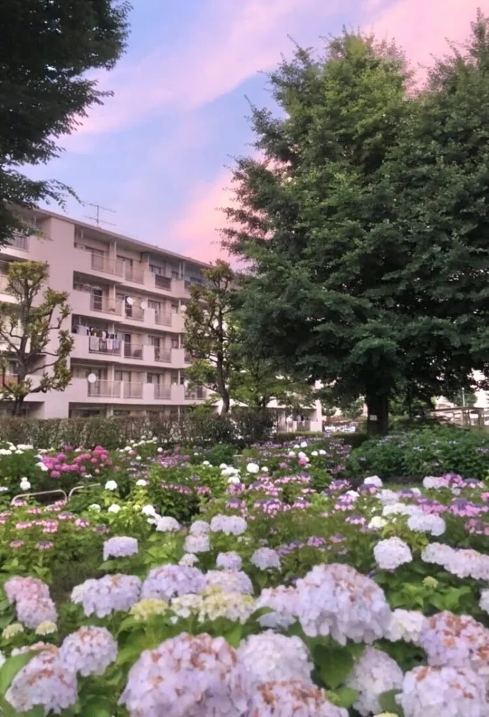 私の棟の隣には紫陽花畑エリアがあって